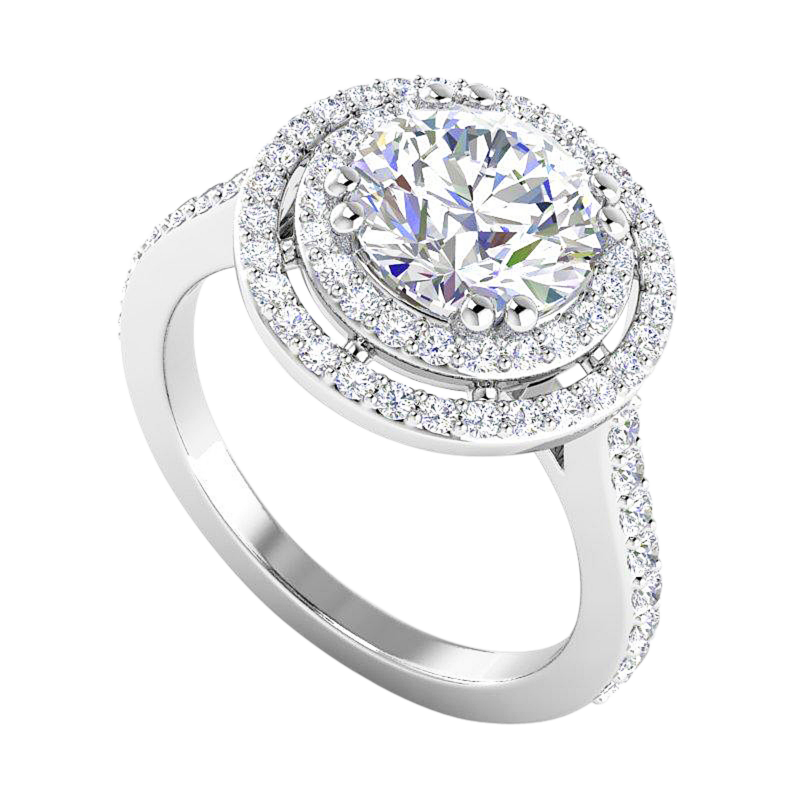 Halo settings – In halo settings, smaller diamonds encircle and accentuate a center diamond, which has the effect of making the center diamond appear larger. Adding to the richness of a halo setting is its versatility; it can be added to any cut, allows for the use of unique stone shapes rather than uniform stone shapes, and it lets you easily swap out the diamond center stone and replace it with a colored center stone to create a more signature look.