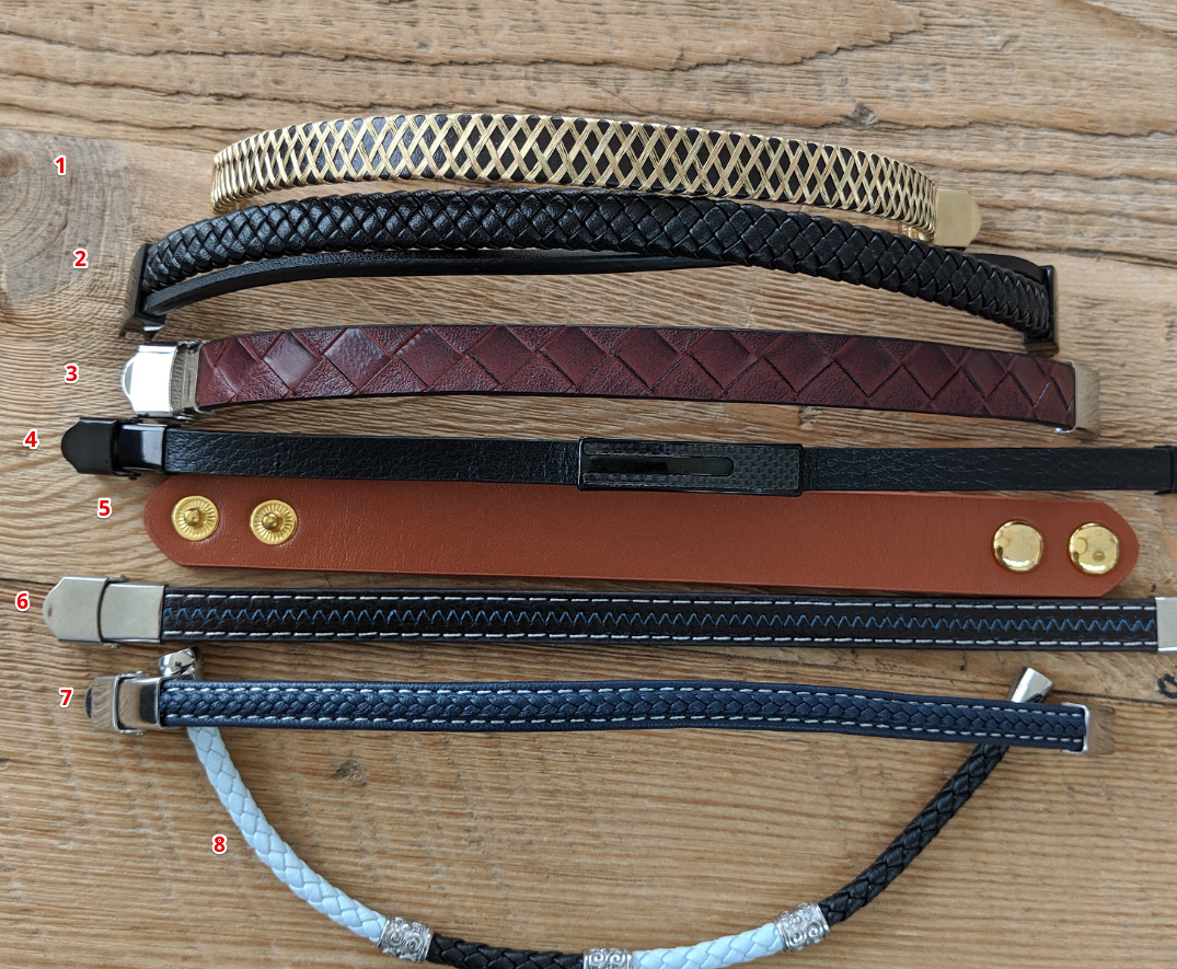 The leathers you see below are just a few examples of these different leather options. All of these leathers can easily and beautifully be incorporated into your bracelet designs: