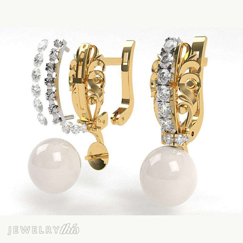 - Patterned Gold Earrings With Gemstones and Pearls