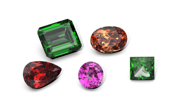 The garnet, while usually thought of as a gemstone, is actually a mineral group, and not all garnets are red, as is commonly believed. Garnets can also come in many colors including beautiful greens and blues, and some are even colorless. Some garnets also have special inclusions that make them unique and distinctive.