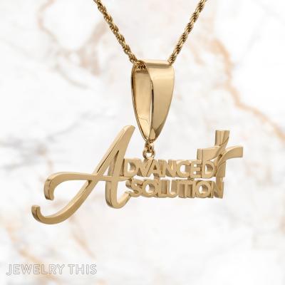 The 2.5-inch pendant is cast in solid 10kt yellow gold, chosen for its durability and classic warmth. The design features a bold, oversized initial “A” that anchors the full company name, with each letter meticulously cut to maintain the sharp lines of the original logo. Every surface is finished with a high-polish luster, ensuring the brand catches the light from every angle. Suspended from a substantial matching bail, this piece is a powerful symbol of professional achievement and the unique story behind a growing business.