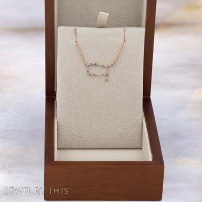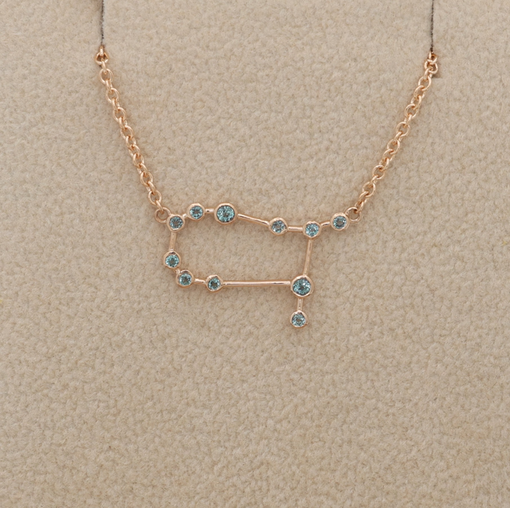 This custom pendant beautifully captures the Gemini constellation in elegant 14k rose gold, adorned with brilliant lab-created alexandrites that shimmer with captivating hues. Designed as a heartfelt tribute, it honors a cherished son while echoing the delicate craftsmanship and personalized touch that define JewelryThis creations. The pendant’s delicate size and adjustable chain make it a versatile and meaningful piece, blending celestial inspiration with timeless elegance to tell a unique and personal story.