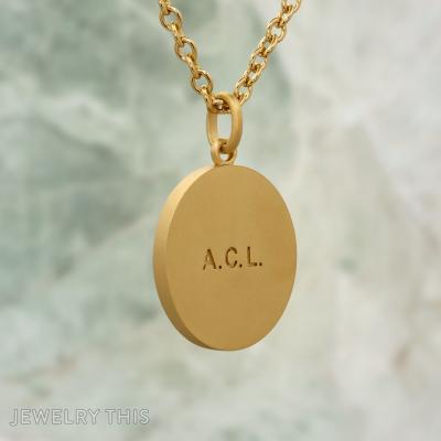 A cherished connection to nature and heritage is captured in this bespoke medallion, custom-crafted to carry deep personal significance. The pendant features a detailed, raised relief of a monkey set against a sunburst background, cradling a vibrant gemstone. On the reverse, the clean, matte surface is engraved with the initials “A.C.L.,” ensuring this singular piece remains a private and meaningful heirloom for its owner.