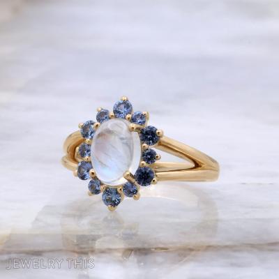 Moonstone And Sapphire Halo Ring